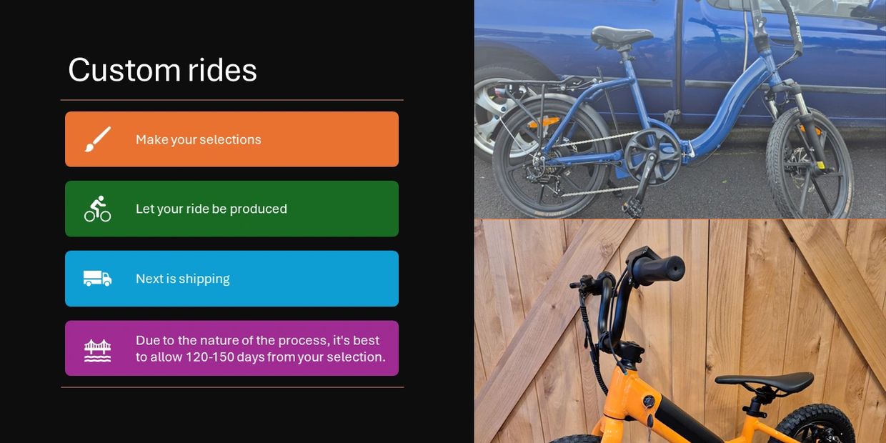 This time frame ensures quality craftsmanship, attention to detail, and a ride that’s truly yours.